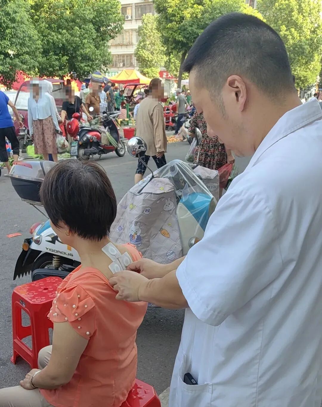 在贴敷过程中,根据患者慢性疾病的种类,张医生运用娴熟的医术,将三伏贴贴于患者大椎穴、风门穴等不同穴位之上。用于激发身体经络阳气,治疗慢性疾病,同时还能提高人体免疫力,增强身体素质。