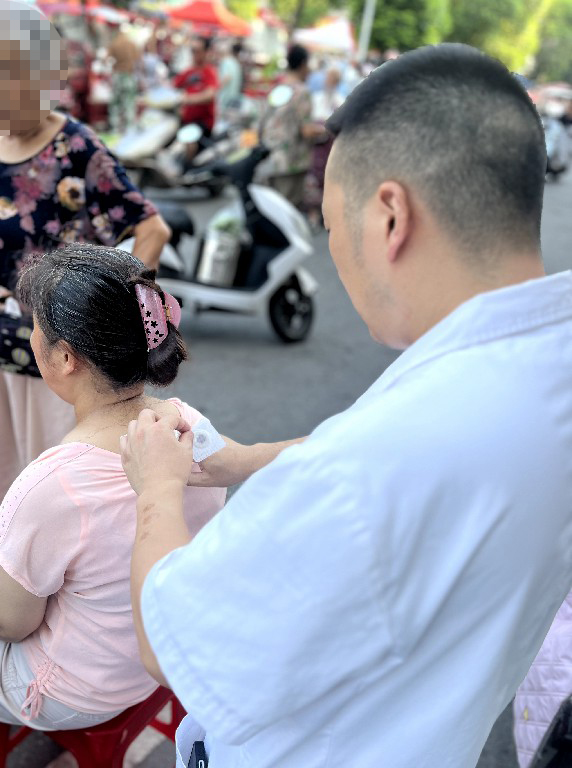 2025年7月20日~23日,我院疼痛科熊汉祥医生、中医康复科张文永医生等人分别在市人民广场、新雅巷、惠湾小区三地开展三伏贴免费贴敷活动。把‘冬病夏治’送到市民身边,用心守护群众健康。